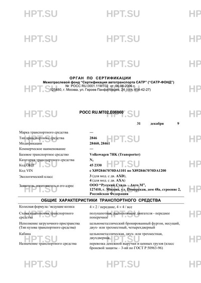 | Базовое ТС / Шасси | Volkswagen 7HK (Transporter) |