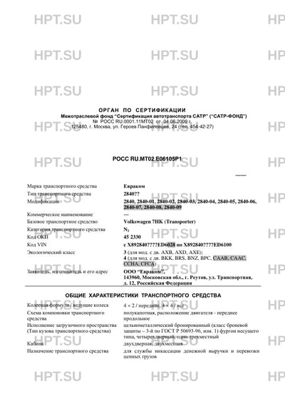 | Тип ТС | 2840?? (2840, 2840-01, 2840-02, 2840-03, 2840-04, 2840-05, 2840-06, 2840-07, 2840-08, 2840-09) |