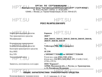 | Тип ТС | 2840?? (2840, 2840-01, 2840-02, 2840-03, 2840-04, 2840-05, 2840-06, 2840-07, 2840-08, 2840-09) |