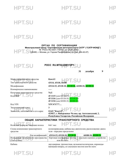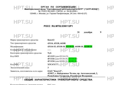 Код ОКП 45 1115 (для 43114-15) 45 1116 (для 43118-10, 43118-24) 45 1134 (для 44108-10, 44108-24)