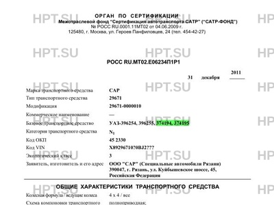 | Предприятие-изготовитель | ООО "САР" (Специальные автомобили Рязани) 390047, г. Рязань, ул. Куйбышевское шоссе, 45, Российская Федерация |