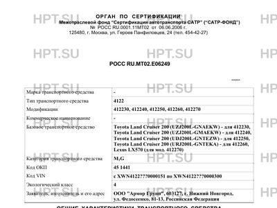 | Код VIN | с ХWN4122???0000151 по ХWN4122???0000300 |