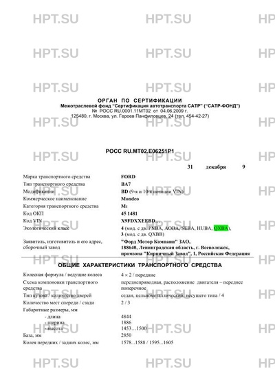 | Тип ТС | BA7 (BD (9-я и 10-я позиции VIN)) Mondeo |