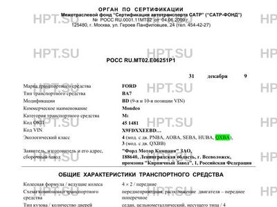 | Коммерческое наименование | BA7 / BD (9-я и 10-я позиции VIN) / Mondeo |