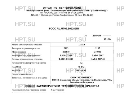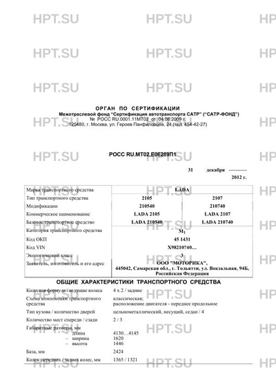 | Коммерческое наименование | 210540, 210740 LADA 2105, LADA 2107 |
