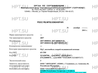 | Экологический класс | 3 Заявитель, представитель изготовителей и его адрес ООО "АВТОДОМ", 432049, г. … |