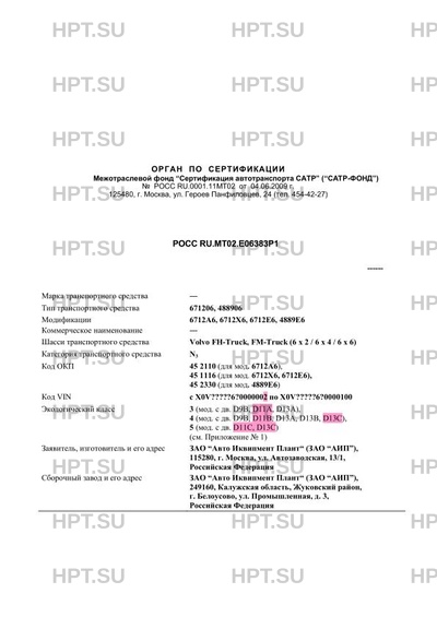 | Предприятие-изготовитель | ЗАО "Авто Иквипмент Плант" (ЗАО "АИП"), 115280, г. Москва, ул. Автозаводская, 13/1, Российская Федерация ЗАО "Авто Иквипмент Плант" (ЗАО "АИП"), 249160, Калужская область, Жуковский район, г. Белоусово, ул. Промышленная, д. 3, Российская Федерация |