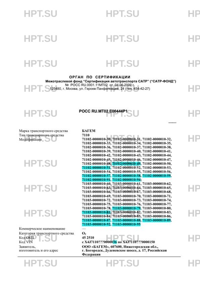 | Марка ТС | БАГЕМ |