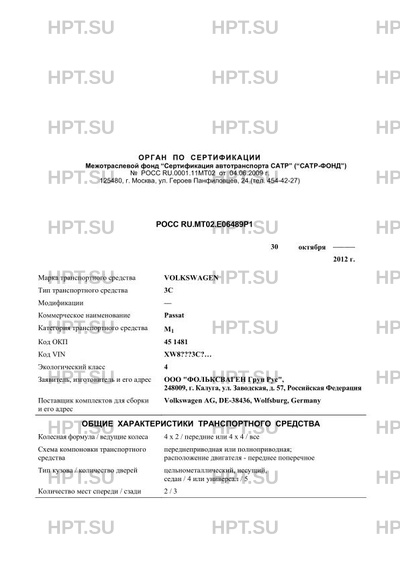 Поставщик сборочных комплектов и его адрес Volkswagen AG, DЕ-38436, Wolfsburg, Germany