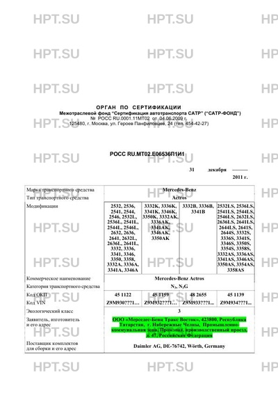 | Тип ТС | Actros (2532, 2536, 2541, 2544, 2546, 2532L, 2536L, 2541L, 2544L, 2546L, 2632, 2636, 2641, 2632L, 2636L, 2641L, 3332, 3336, 3341, 3346, 3350, 3358, 3332A, 3336A, 3341A, 3346A), (3332K, 3336K, 3341K, 3346K, 3350K, 3332AK, 3336AK, 3341AK, 3346AK, 3350AK), (3332B, 3336B, 3341B), (2532LS, 2536LS, 2541LS, 2544LS, 2546LS, 2632LS, 2636LS, 2641LS, 2644LS, 2641S, 2644S, 3332S, 3336S, 3341S, 3346S, 3350S, 3354S, 3358S, 3332AS, 3336AS, 3341AS, 3346AS, 3350AS, 3354AS, 3358AS) Mercedes-Benz Actros |
