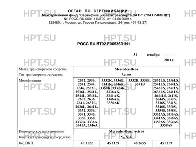 | Коммерческое наименование | Actros (2532, 2536, 2541, 2544, 2546, 2532L, 2536L, 2541L, 2544L, 2546L, 2632, 2636, 2641, 2632L, 2636L, 2641L, 3332, 3336, 3341, 3346, 3350, 3358, 3332A, 3336A, 3341A, 3346A), (3332K, 3336K, 3341K, 3346K, 3350K, 3332AK, 3336AK, 3341AK, 3346AK, 3350AK), (3332B, 3336B, 3341B), (2532LS, 2536LS, 2541LS, 2544LS, 2546LS, 2632LS, 2636LS, 2641LS, 2644LS, 2641S, 2644S, 3332S, 3336S, 3341S, 3346S, 3350S, 3354S, 3358S, 3332AS, 3336AS, 3341AS, 3346AS, 3350AS, 3354AS, 3358AS) Mercedes-Benz Actros |