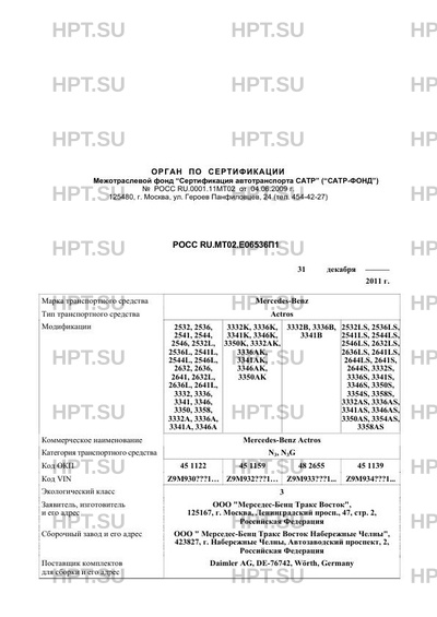 | Тип ТС | Actros (2532, 2536, 2541, 2544, 2546, 2532L, 2536L, 2541L, 2544L, 2546L, 2632, 2636, 2641, 2632L, 2636L, 2641L, 3332, 3336, 3341, 3346, 3350, 3358, 3332A, 3336A, 3341A, 3346A); (3332K, 3336K, 3341K, 3346K, 3350K, 3332AK, 3336AK, 3341AK, 3346AK, 3350AK); (3332B, 3336B, 3341B); (2532LS, 2536LS, 2541LS, 2544LS, 2546LS, 2632LS, 2636LS, 2641LS, 2644LS, 2641S, 2644S, 3332S, 3336S, 3341S, 3346S, 3350S, 3354S, 3358S, 3332AS, 3336AS, 3341AS, 3346AS, 3350AS, 3354AS, 3358AS) Mercedes-Benz Actros |