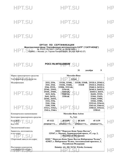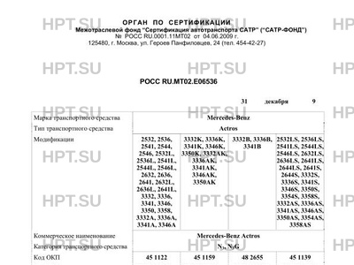 | Тип ТС | Actros (2532, 2536, 2541, 2544, 2546, 2532L, 2536L, 2541L, 2544L, 2546L, 2632, 2636, 2641, 2632L, 2636L, 2641L, 3332, 3336, 3341, 3346, 3350, 3358, 3332A, 3336A, 3341A, 3346A); (3332K, 3336K, 3341K, 3346K, 3350K, 3332AK, 3336AK, 3341AK, 3346AK, 3350AK); (3332B, 3336B, 3341B); (2532LS, 2536LS, 2541LS, 2544LS, 2546LS, 2632LS, 2636LS, 2641LS, 2644LS, 2641S, 2644S, 3332S, 3336S, 3341S, 3346S, 3350S, 3354S, 3358S, 3332AS, 3336AS, 3341AS, 3346AS, 3350AS, 3354AS, 3358AS) |