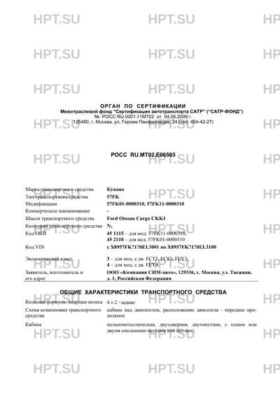 Базовое ТС / Шасси Ford Otosan Cargo CKK1