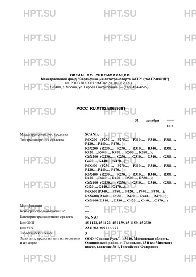 | Заявитель | ООО "Скания-Русь", 143040, Московская область, Одинцовский район, г. Голицыно, 43-й км Минского шоссе, владение № 1, Российская Федерация 2 |
