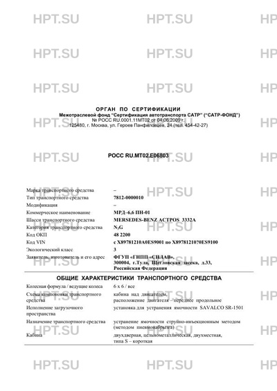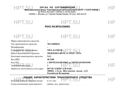| Базовое ТС / Шасси | MERSEDES-BENZ АСТРОS 3332А |