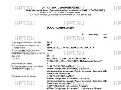 | Экологический класс | 4 Заявитель, представитель изготовителей и его адрес ООО "СОЛЛЕРС-КАМА", 423600… |