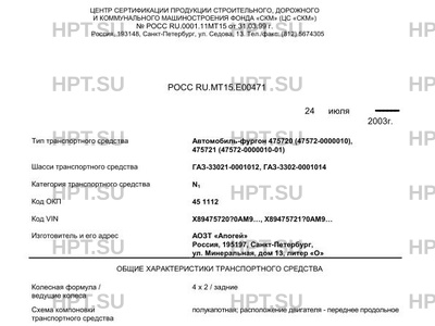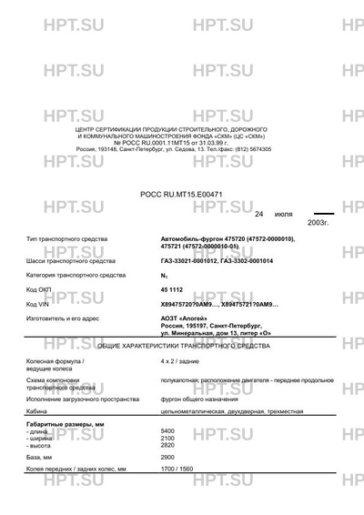 | Базовое ТС / Шасси | ГАЗ-33021-0001012, ГАЗ-3302-0001014 |