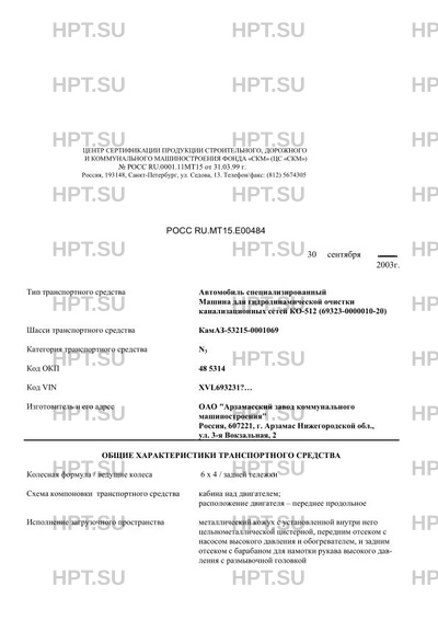 | Тип ТС | Машина для гидродинамической очистки канализационных сетей КО-512 (69323-0000010-20) на шасси КамАЗ-53215-0001069 |