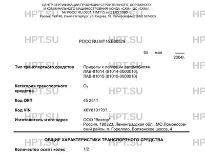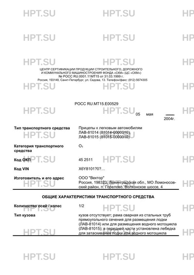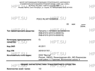 | Тип ТС | Прицепы к легковым автомобилям ЛАВ-81014 (81014-0000010), ЛАВ-81015 (81015-0000010) |