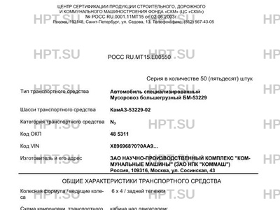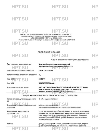 Коммерческое наименование Мусоровоз большегрузный БМ-53229 на шасси КамАЗ-53229-02