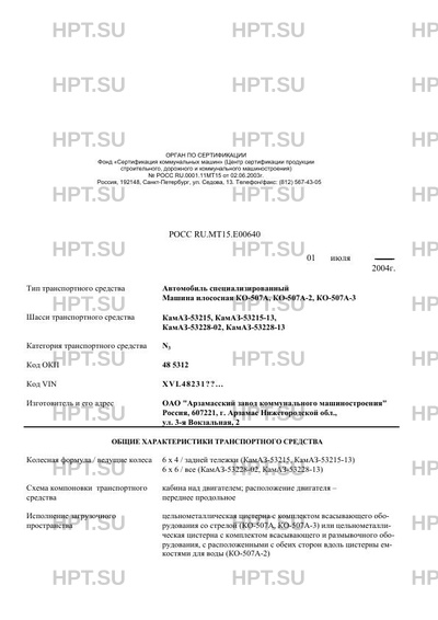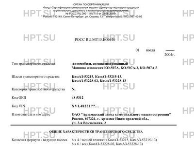 | Тип ТС | Автомобиль специализированный Машина илососная КО-507А, КО-507А-2, КО-507А-3 |