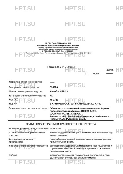 | Коммерческое наименование | 69922А на шасси КамАЗ-43118-13 |