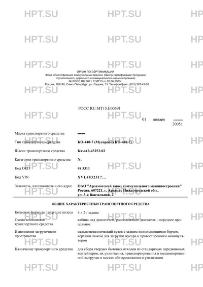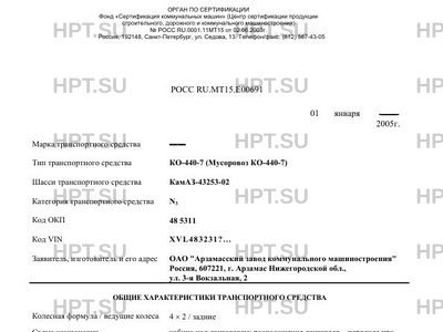 | Коммерческое наименование | КО-440-7 (Мусоровоз КО-440-5) на шасси КамАЗ-43253-02 |