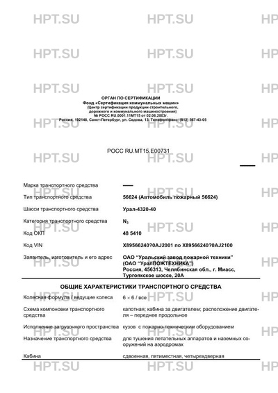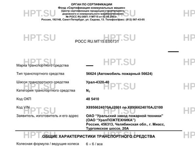 | Коммерческое наименование | 56624 (Автомобиль пожарный 56624) на шасси Урал-4320-40 |