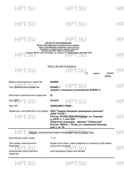 | Заявитель | ООО "Северо-Западная трейлерная компания" (ООО "СЗТК") Россия, 191023, Санкт-Петербург, ул. Садовая, д. 28/30, к. 1, пом. 82Н Сборочная площадка - филиал "Губернский" Россия, 180019, г. Псков, ул. Сиреневый бульвар, дом 1, кв. 93 |