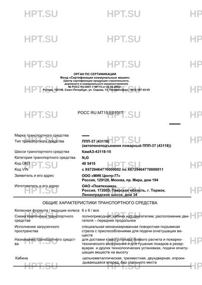 Тип ТС ППП-37 (43118) (автопеноподъемник пожарный ППП-37 (43118)) с делителем с дополн…