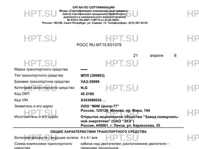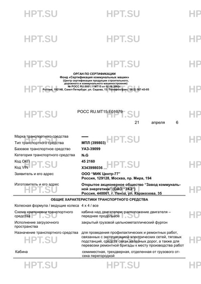 | Коммерческое наименование | МПЛ (399803) на шасси УАЗ-39099 |