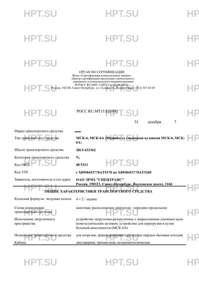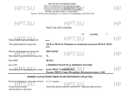 | Коммерческое наименование | МСК-6, МСК-6А (Машина со сменными кузовами МСК-6, МСК-6А) на шасси ЗИЛ-433362 |