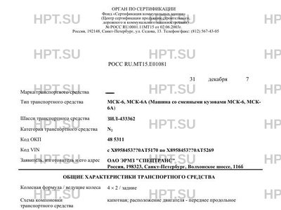 | Тип ТС | МСК-6, МСК-6А (Машина со сменными кузовами МСК-6, МСК- 6А) |
