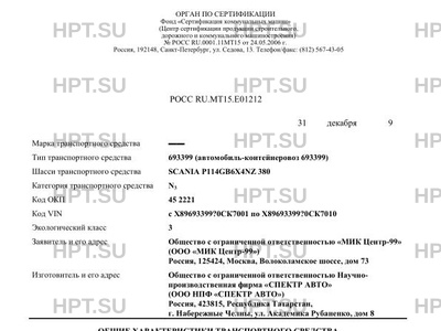 | Тип ТС | 693399 (автомобиль-контейнеровоз 693399) |