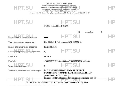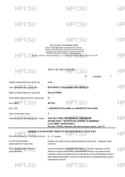 Тип ТС КМ-М5551-2 (Мусоровоз КМ-М5551-2)