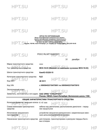 | Тип ТС | МСК-16-03 (Машина со сменными кузовами МСК-16-03) |
