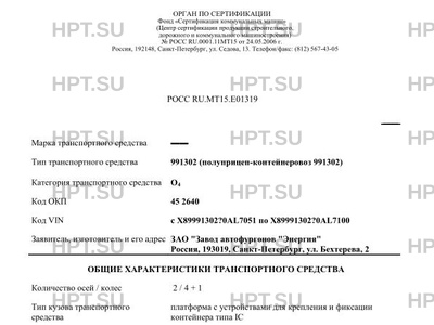| Коммерческое наименование | 991302 (полуприцеп-контейнеровоз 991302) |