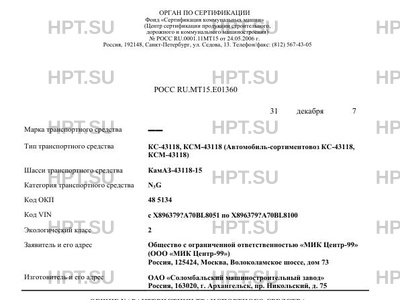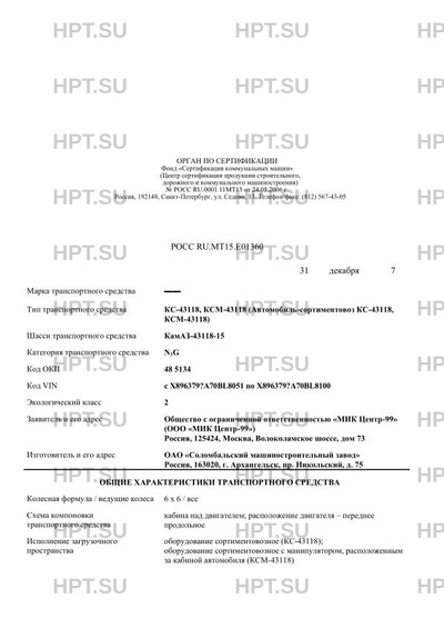 | Тип ТС | КС-43118, КСМ-43118 (Автомобиль-сортиментовоз КС-43118, КСМ-43118) на шасси КамАЗ-43118-15 |