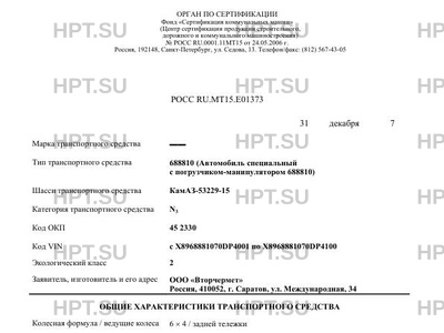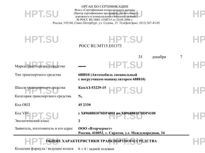 | Коммерческое наименование | 688810 (Автомобиль специальный с погрузчиком-манипулятором 688810) |