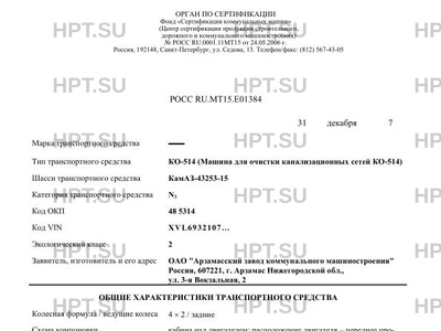 | Тип ТС | КО-514 (Машина для очистки канализационных сетей КО-514 |