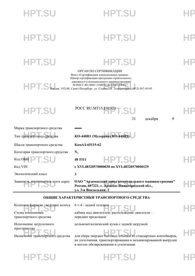 | Тип ТС | КО-440R1 (Мусоровоз КО-440R1) |