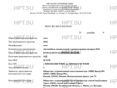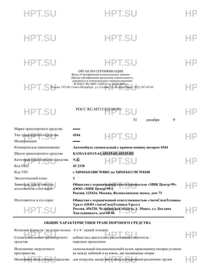 | Тип ТС | 4544 (Автомобиль специальный с краном-манипулятором 4544) |