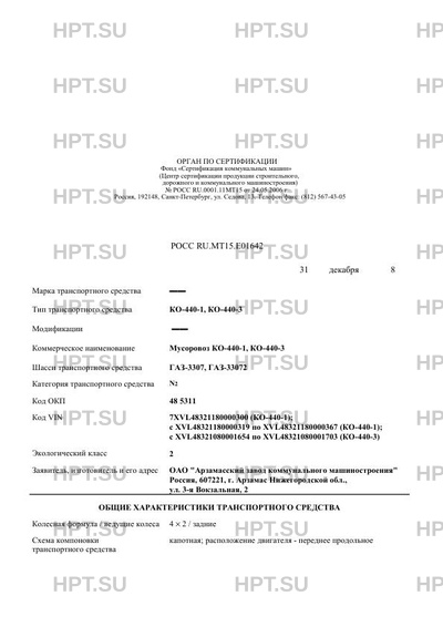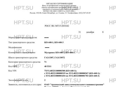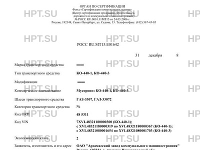 | Коммерческое наименование | Мусоровоз КО-440-1, КО-440-3 |