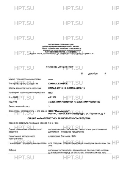 | Номер документа | РОСС RU.МТ15.E01662 |