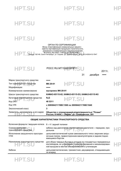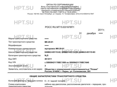 | Орган по сертификации | Фонд «Сертификация коммунальных машин» |