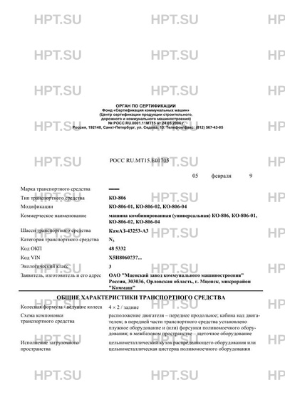| Предприятие-изготовитель | ОАО "Мценский завод коммунального машиностроения" Россия, 303036, г. Мценск Орловской обл., микрорайон "КОММАШ" |