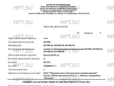 | Тип ТС | КО-806-01, КО-806-02, КО-806-04 |