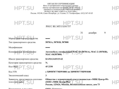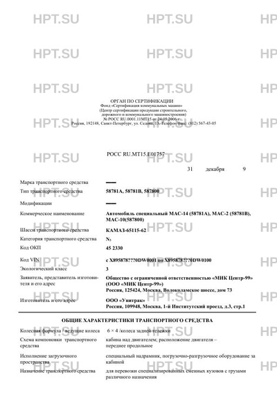 | Коммерческое наименование | Автомобиль специальный МАС-14 (58781А), МАС-2 (58781В), МАС-10(587800) |
