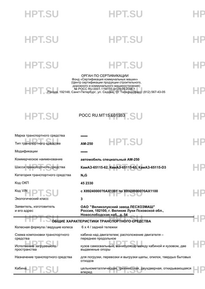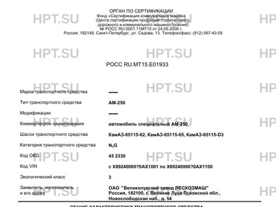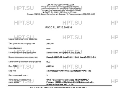 | Коммерческое наименование | автомобиль специальный АМ-250 |